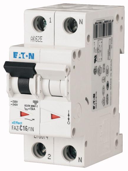 This is xEffect 25A MCB 1P + N Curve C manufactured by Eaton. The manufacturer part number is 239076 FAZ6-C25/1N. The product has a current rating of 25a. It has a model number faz6-c25/1n. It allows type c tripping features. The product is available in din rail mount style. It features xeffect range. It has equipped with 1p+n poles.