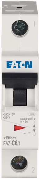 This is xEffect 6A MCB Mini Circuit Breaker1P Curve C Breaking Capacity 10 kA 230V manufactured by Eaton. The manufacturer part number is 278555 FAZ-C6/1. The product has a current rating of 6a. This is a type of mcb, a circuit breaker with unique features. Its accurate length is 80mm. The product has a rated DC voltage of 60v. The product is available in din rail mount style. Furthermore, the product is 17.5mm wide. The product comes in 74mm depth. The product has a rated AC voltage of 230v. It features xeffect range. The product has 10 ka breaking capacity at maximum voltage rating. It allows type c tripping features. It has equipped with 1p poles.