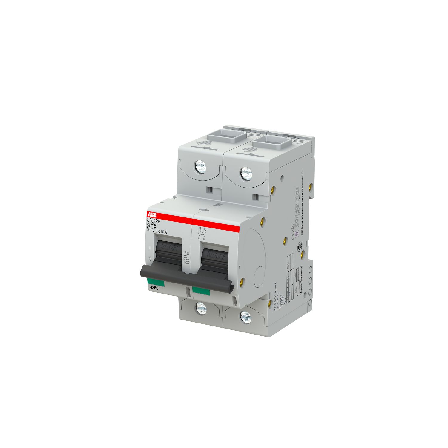 This is S800PV 16A MCB2P Curve B manufactured by ABB. The manufacturer part number is 2CCF019599R0001 S802PV-SP16 - 5 kA. The product has a current rating of 16 a. It is a toggle switch reset actuator. It is IP rated with ip20. It utilises thermal tripping mechanism. The product s800pv, is a highly preferred choice for users. It features s800pv range. In addition, the height is 82.5mm. The product has a rated DC voltage of 800 v dc. Furthermore, the product is 54 mm wide. The product comes in 82.5mm depth. It features 5ka breaking capacity. It allows type b tripping features. miniature circuit breaker is a versatile product designed to provide user-defined applications. It has equipped with 2 poles. The terminal is a cage terminal type. It has a din rail type mount .