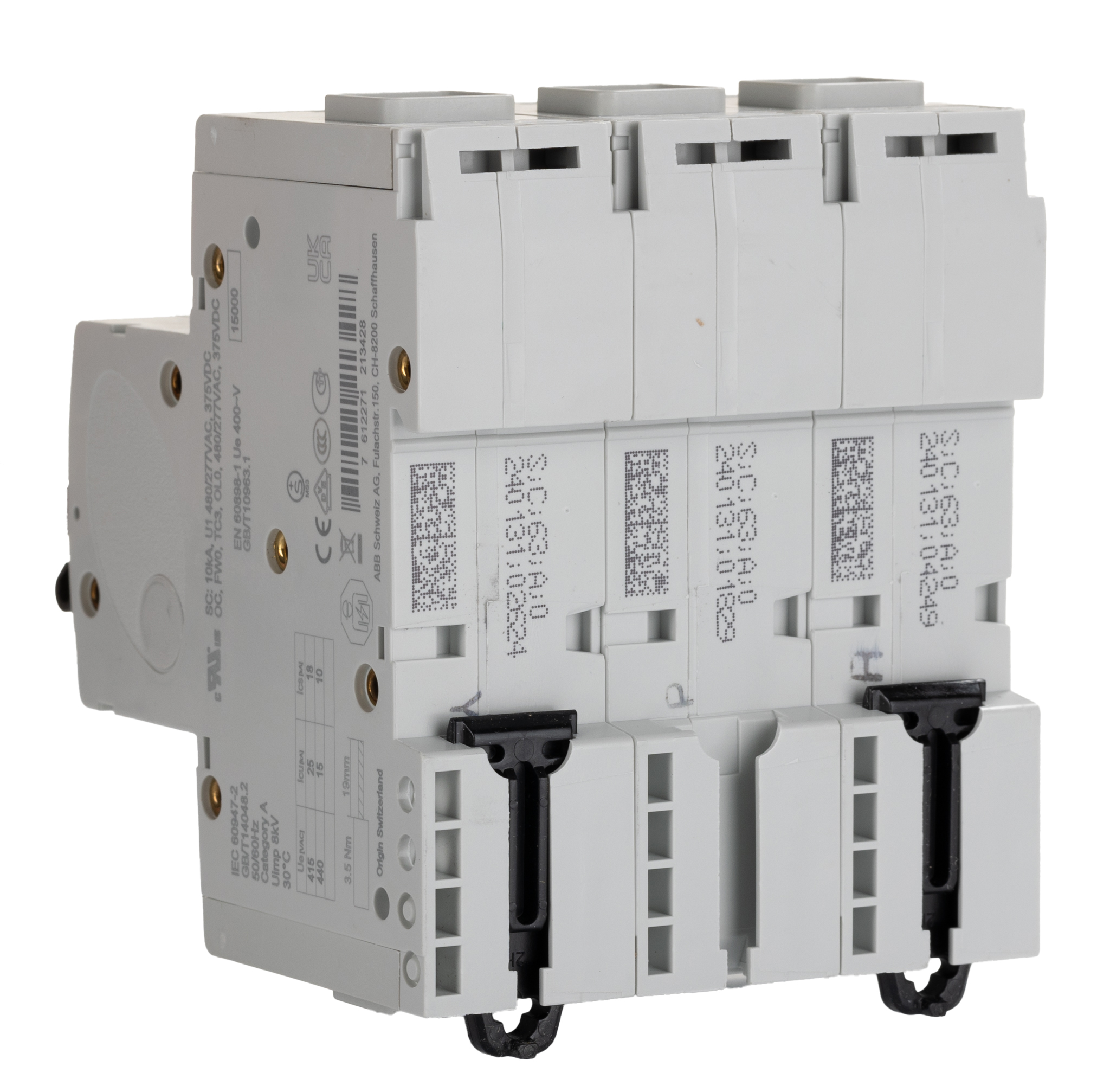 This is HPMCB - High Performance MCB 63A MCB3P Curve C manufactured by ABB. The manufacturer part number is 2CCS883001R0634 S803C C 63A - 25 KA. The product has a current rating of 63a. Applications Information involves commercial, industrial. The product s800c, is a highly preferred choice for users. This is a type of mcb, a circuit breaker with unique features. Its accurate length is 95mm. It has a model number s803c-c63. It allows type c tripping features. The product is available in din rail mount style. Furthermore, the product is 81mm wide. The product comes in 82.5mm depth. The product has a rated AC voltage of 400 v, 415 v. The product has 25 ka breaking capacity at maximum voltage rating. It features high performance range. The terminal contact is kind of screw. It has equipped with 3 poles. It is a toggle switch reset actuator.