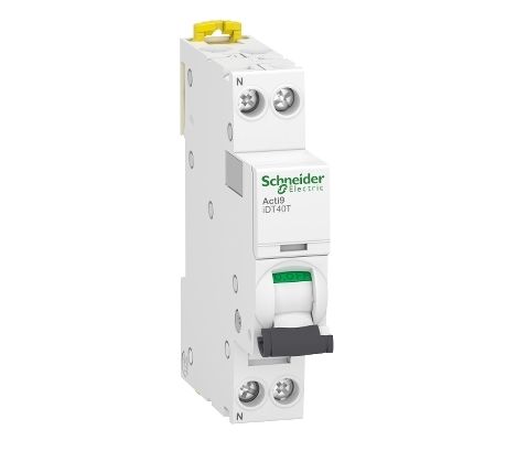 This is Acti9 MCB 1P+N Poles 40A Curve B 230V AC manufactured by Schneider Electric. The manufacturer part number is A9P12640. Better World Verification Options - green premium. Is it a better world product? yes. The product has a current rating of 40a. The product acti9 idt40t, is a highly preferred choice for users. It allows type b tripping features. The product is available in din rail mount style. It features acti 9 range. The product has a rated AC voltage of 230v. It has equipped with 1+n poles.