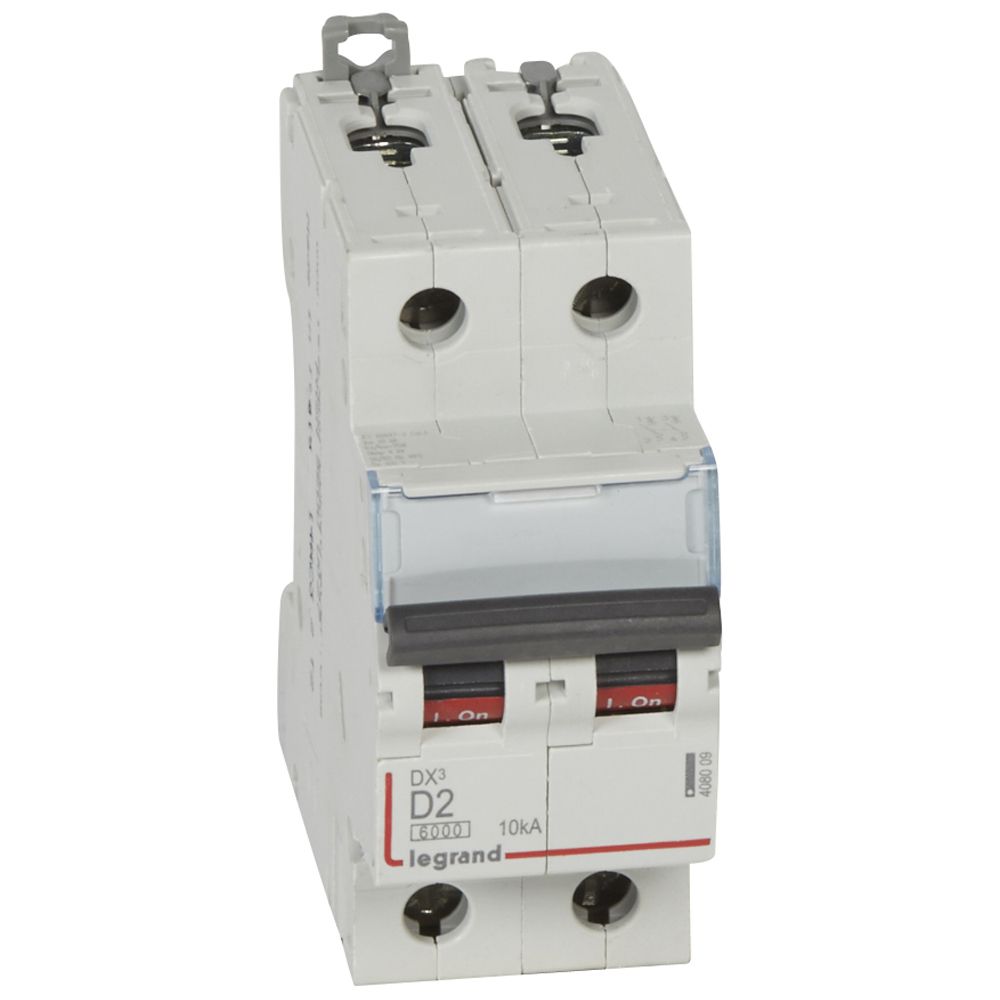 This is DX3 Circuit Breaker 2P 2A Curve D 400V AC 10 kA Breaking Capacity manufactured by Legrand. The manufacturer part number is 408009. The product has a current rating of 2a. This is a type of mcb, a circuit breaker with unique features. It allows type d tripping features. The product is available in din rail mount style. It features dx3 range. The product has a rated AC voltage of 400v. The product has 10 ka breaking capacity at maximum voltage rating. It has equipped with 2 poles.