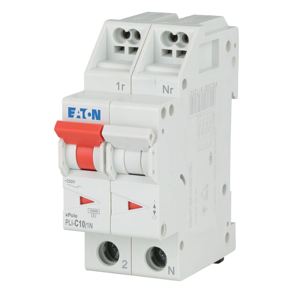 This is MCB 2P 10A Curve C 230V AC 10 kA Breaking Capacity manufactured by Eaton. The manufacturer part number is 101277 PLI-C10/1N. The product has a current rating of 10a. The product eaton moeller series, is a highly preferred choice for users. It allows type c tripping features. The product has a rated AC voltage of 230v. The product has 10 ka breaking capacity at maximum voltage rating. It has equipped with 2 poles.