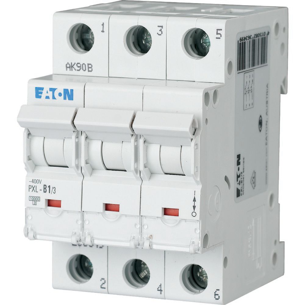 This is xPole - PXL PXL MCB 3P 1A Curve B 400V AC 10 kA Breaking Capacity manufactured by Eaton. The manufacturer part number is 236349 PXL-B1/3. The product has a current rating of 1a. The product pxl, is a highly preferred choice for users. It allows type b tripping features. It features xpole - pxl range. The product has a rated AC voltage of 400v. The product has 10 ka breaking capacity at maximum voltage rating. It has equipped with 3 poles.