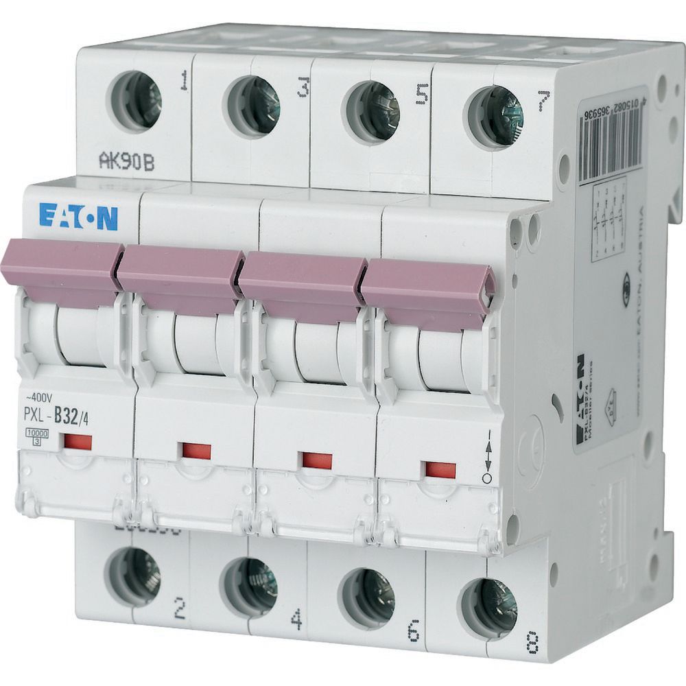 This is xPole - PXL PXL MCB 4P 32A Curve B 400V AC 10 kA Breaking Capacity manufactured by Eaton. The manufacturer part number is 236593 PXL-B32/4. The product has a current rating of 32a. The product pxl, is a highly preferred choice for users. It allows type b tripping features. It features xpole - pxl range. The product has a rated AC voltage of 400v. The product has 10 ka breaking capacity at maximum voltage rating. It has equipped with 4 poles.
