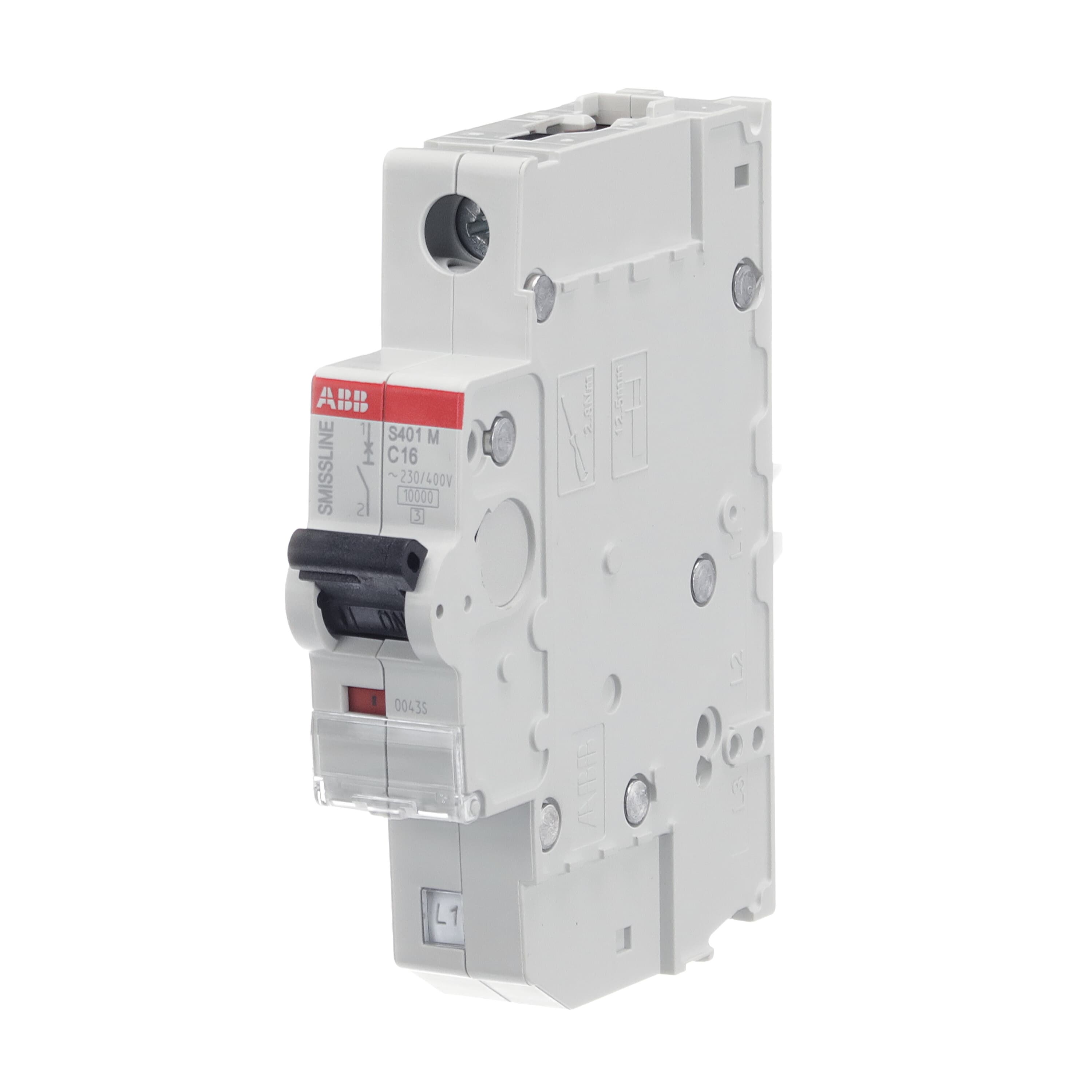 This is SMISSLINE TP S400M MCB 1P 16A Curve C 230V AC 60V DC 10 kA Breaking Capacity manufactured by ABB. The manufacturer part number is 2CCS571001R0164 S401MC16. The product has a current rating of 16a. Applications Information involves commercial, industrial. The product s400m, is a highly preferred choice for users. This is a type of mcb, a circuit breaker with unique features. Its accurate length is 91mm. It has a model number s401m-c16. The product has a rated DC voltage of 60v. The product is available in din rail mount style. Furthermore, the product is 18mm wide. The product comes in 82mm depth. The product has a rated AC voltage of 230 v, 400v. The product has 10 ka breaking capacity at maximum voltage rating. It features smissline tp range. The terminal contact is kind of screw. The product also provides special features, such as overload protection, thermal tripping. It allows type c tripping features. It has equipped with 1 poles. It is a toggle switch reset actuator.
