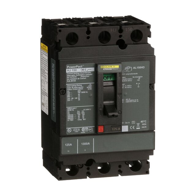 This is 3P 125 A MCCB Molded Case Circuit Breaker Breaking Capacity 25 kA DIN Rail Mount manufactured by Schneider Electric. The manufacturer part number is HJL36125. The product has a current rating of 125 a. Its accurate length is 163mm. The product is available in din rail mount style. Furthermore, the product is 105mm wide. The product comes in 111mm depth. The product has a rated AC voltage of 600 v. It features 25 ka breaking capacity. It has equipped with 3p poles. It is a type of thermal magnetic breaker. 250 v of DC voltage rating. The product is available in chassis mount configuration. The product powerpact, is a highly preferred choice for users. The product exhibits 600 v of AC voltage rating. In addition, box is the available packaging type of the product. It is approved by csa, ul. The product carries lever actuator. Is this product illuminated? none. It has a long 5 weeks standard lead time. It has equipped with 3 poles. Additionally, the product's output is 125a. The schneider electric's product offers user-desired applications.
