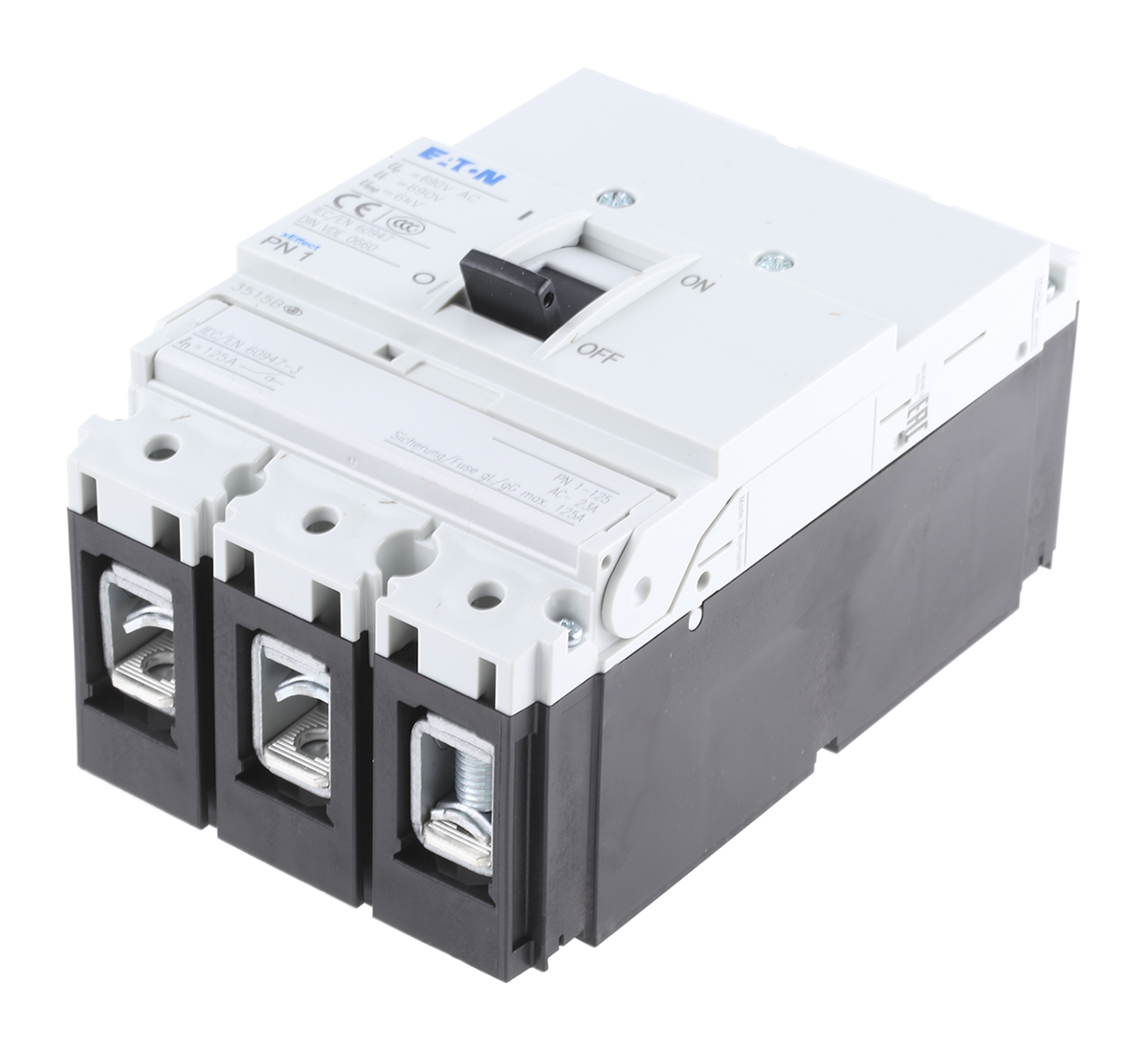 This is MCCB 1P 125A Breaking Capacity 80 kA Fixed Mount manufactured by Eaton. The manufacturer part number is 259142 PN1-125. The product has a current rating of 125a. This is a type of mccb, a circuit breaker with unique features. The product eaton moeller, is a highly preferred choice for users. Its accurate length is 90mm. The product is available in fixed style. Furthermore, the product is 145mm wide. The product comes in 84.5mm depth. The product has a rated AC voltage of 690v. The product has 80 ka breaking capacity at maximum voltage rating. It has equipped with 1 poles.