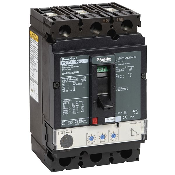 This is PowerPact MCCB 3P 100A Breaking Capacity 25 kA DIN Rail Mount manufactured by Schneider Electric. The manufacturer part number is NHJL36100U31X. The product has a current rating of 100a. The product powerpact, is a highly preferred choice for users. The product is available in din rail mount style. It features powerpact range. The product has 25 ka breaking capacity at maximum voltage rating. It has equipped with 3 poles.