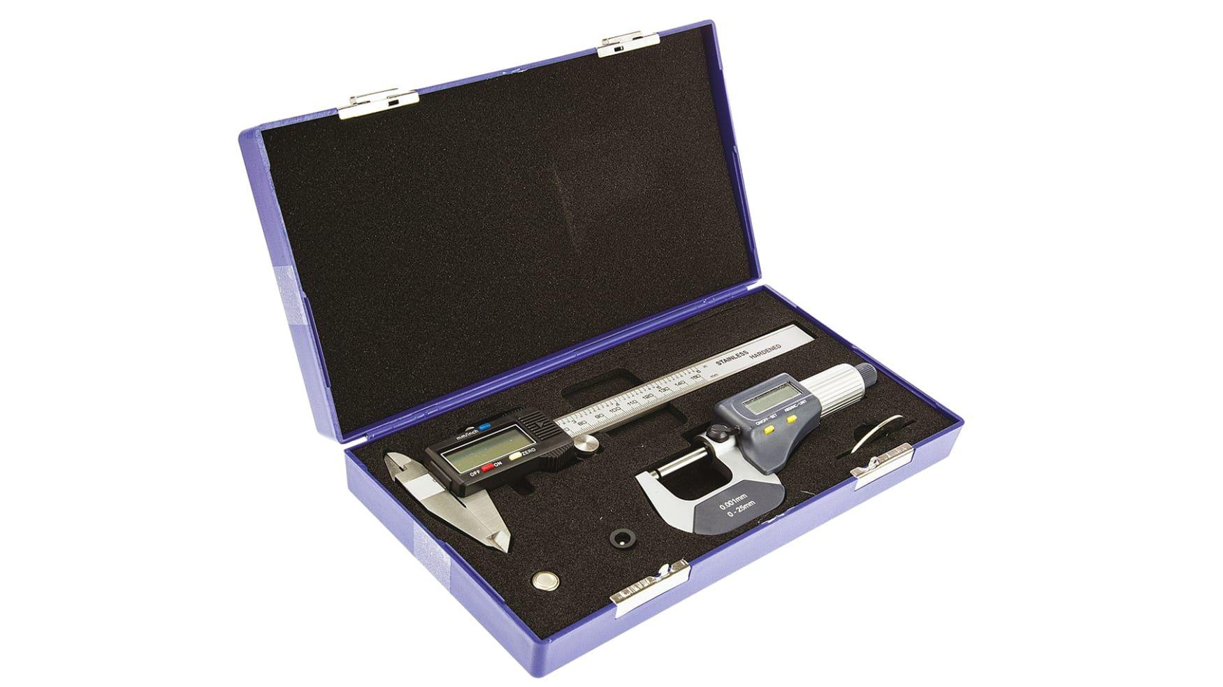 This is Caliper and Micrometer Measuring Set UKAS manufactured by RS PRO. The manufacturer part number is 243-6846. Additionally, it has 150mm maximum caliper measurement . The maximum dial indicator measurement of the product is 25mm . Moreover, it has a maximum micrometer measurement about 25mm . It is calibrated ukas . Moreover, it has caliper and micrometer set contents . Features 0.001 mm resolution. It provides high accuracy of 0.003 mm.