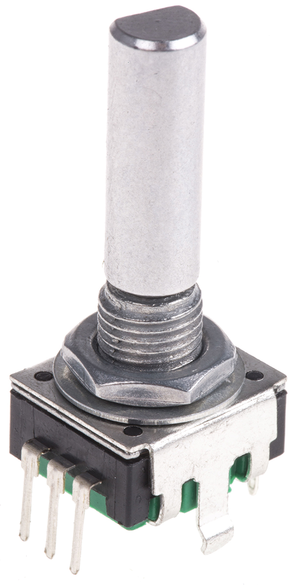 This is 24 Pulse Incremental Mechanical Rotary Encoder with a 6 mm Flat Shaft (Not Indexed) manufactured by Bourns. The manufacturer part number is PEC11R-4225F-S0024. It has a maximum 60rpm operating speed . The diameter of the shaft is 6 mm. It exhibits 24 pulses per resolution . The given diameter of mounting hole is 7mm. Moreover, it contains an encoder of incremental reading . The shaft is 25mm long. It has a flat style shaft . It has a digital square wave encoder signal . Moreover, its output is not indexed .