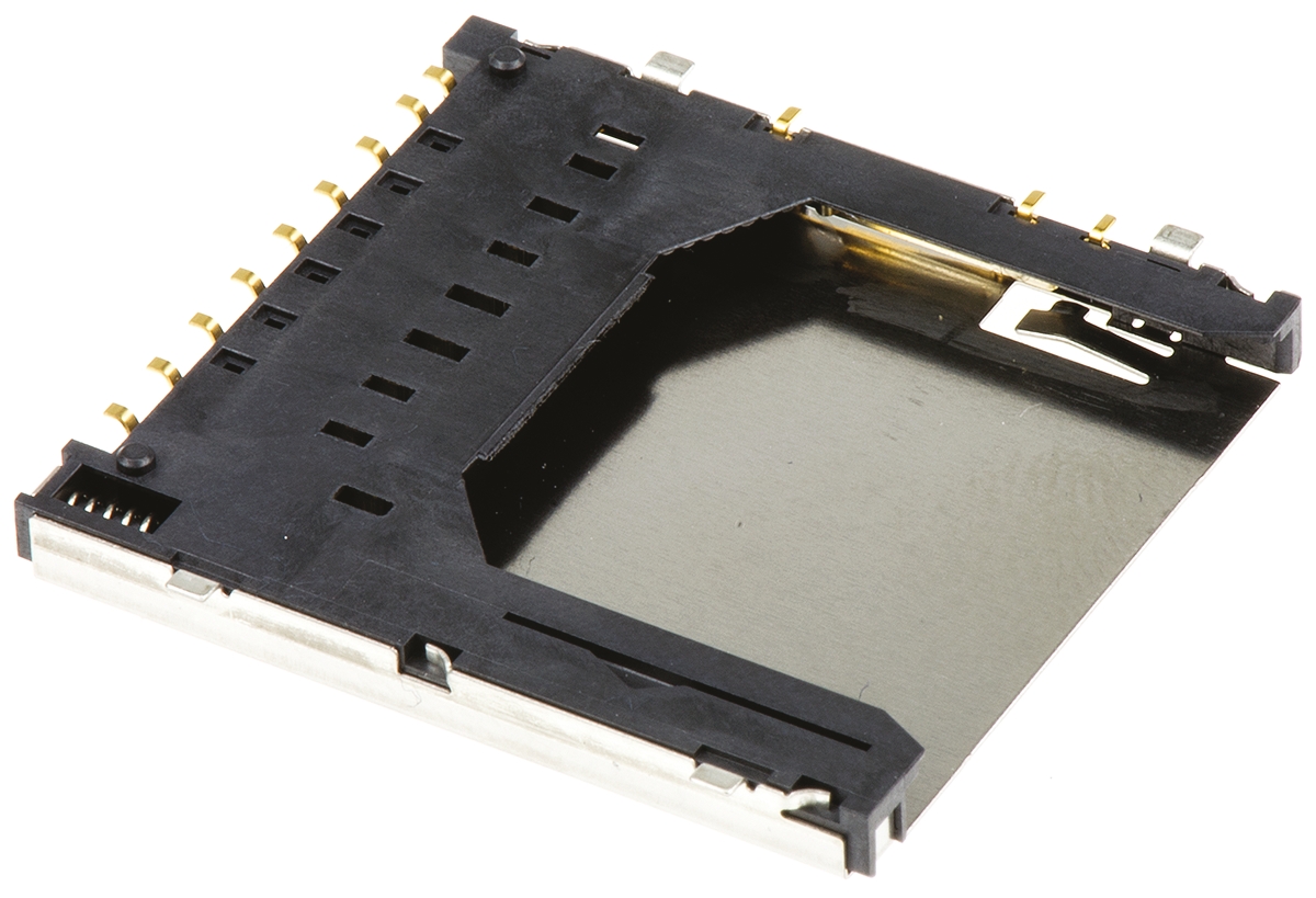 This is 9 Way Right Angle SD Card Memory Card Connector with Solder Termination manufactured by Hirose. The manufacturer part number is DM1AA-SF-PEJ(72). The product is made from sturdy phosphor bronze materials. The product contains 9 contacts. The product has a right angle orientation. The product features a sd card type. In addition, female is the available "Gender" of the product. Moreover, the product is 2.5mm. The product also features robust thermoplastic housing material. It comes in 1 of rows. Moreover, it has a/an push-push insertion/removal method . The product dm1, is a highly preferred choice for users. The product is designed with a solder termination. The high-quality gold is used as contact plating material. memory card connector is a versatile product designed to provide user-defined applications. It has a maximum operating temperature of 85°c. Whereas, the minimum operating temperature of the product is -25°c. It has a surface mount type mount .