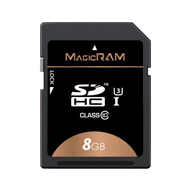 This is manufactured by MagicRAM, Inc.. The manufacturer part number is MR008PSD-001. It is assigned with possible HTSUS value of 8523.51.0000. It is shipped in tray package . The product has -25°c ~ 85°c operating temperature range. It is a type of sdhc™ memory type. It holds a typical memory size of 8gb. This product use pslc technology. It has a robust speed of class 10, uhs class 1, u3. The product is designated with the ear99 code number.