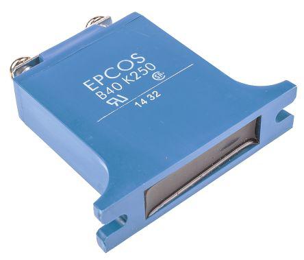 This is HighE Series Metal Oxide Varistor 2.9nF 300A Clamping 650V Varistor 390V manufactured by EPCOS. The manufacturer part number is B72240B0251K. It has about 390v varistor voltage . The clamping voltage is about 650v . The product highe, is a highly preferred choice for users. It carries an energy of 490j. Its accurate length is 60mm. The product has a maximum 250v AC voltage rating . It provides a 2.9nf of capacitance value. The product comes in 14mm depth. The lead features 24mm pitch. Its clamping current is approximately 300a . It can withstand a maximum 40000a surge current . It has a maximum 320v DC voltage rating .