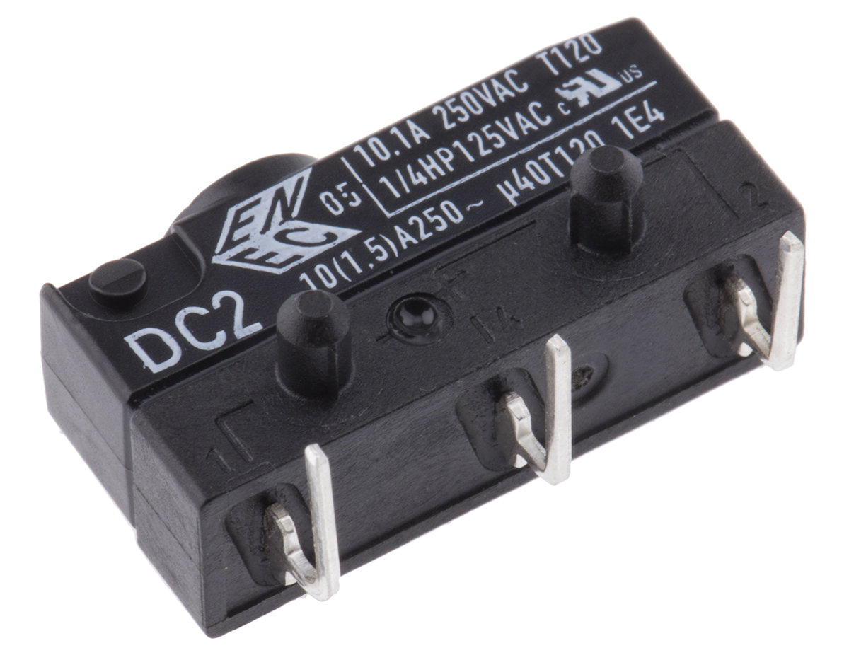 This is SPDT-NO/NC Button Microswitch 10.1 A @ 250 V ac manufactured by ZF. The manufacturer part number is DC2C-K8AA. It has a 3.33 n of operating force. It is IP rated with ip6k7. The rated contact current is 10.1 a @ 250 v ac. Whereas, the minimum operating temperature of the product is -40°c. The product has -40 → +120°c of operating temperature range. The contact is equipped with spdt configuration. The product carries button actuator. The product also provide mechanical stability with 1000000operations. It has a maximum operating temperature of +120°c. The terminal is a right angle pcb type. The product is made from sturdy silver alloy materials.