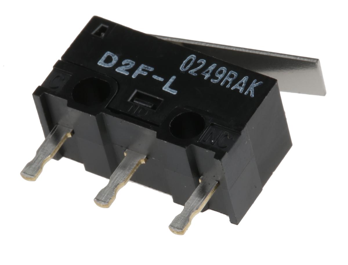 This is SPDT-NO/NC Hinge Lever Microswitch 3 A @ 125 V ac manufactured by Omron. The manufacturer part number is D2F-L. It has a 0.78 n of operating force. Whereas, the minimum operating temperature of the product is -25°c. It is IP rated with ip40. The rated contact current is 3 a @ 125 v ac. The product has -25 → +65°c of operating temperature range. The contact is equipped with spdt configuration. The product carries hinge lever actuator. The product also provide mechanical stability with 1000000operations. It carries a release force of 0.05n. It has a maximum operating temperature of +65°c. The terminal is a pcb type. The product is made from sturdy silver alloy materials.