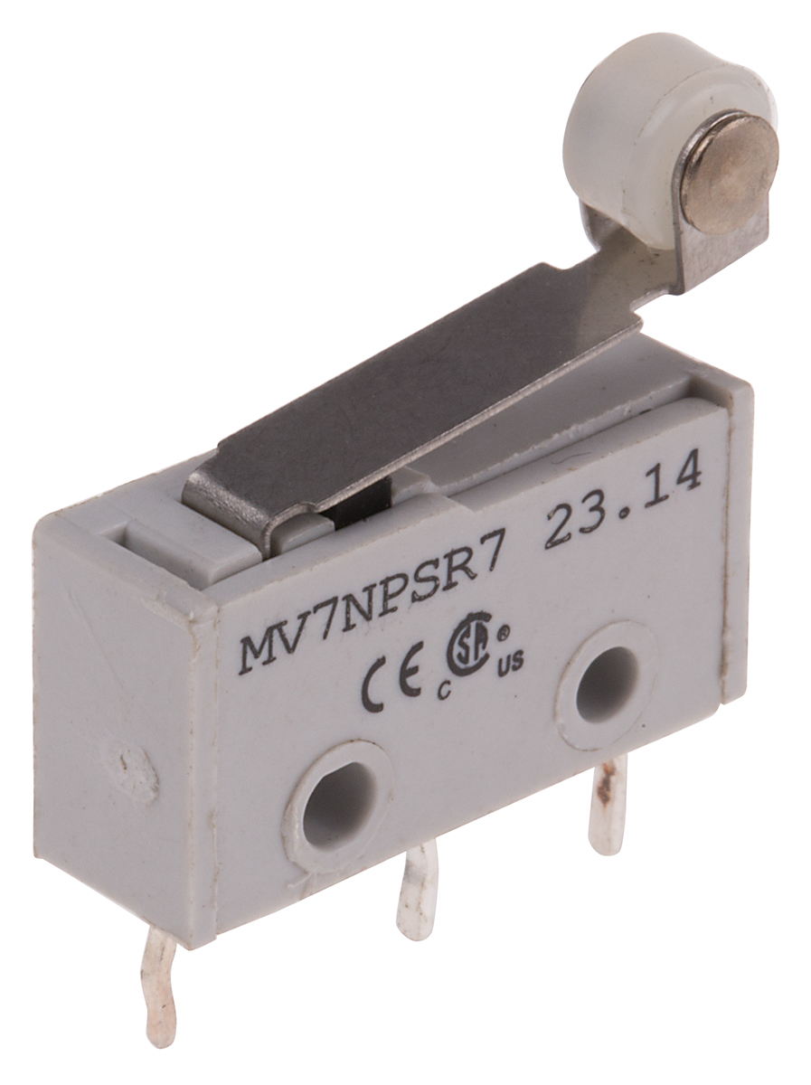 This is SP Roller Lever Subminiature Micro Switch 2 A @ 250 V ac manufactured by RS Pro. The manufacturer part number is 804-6271. It has a 50 gms of operating force. The product complies with all safety standards, such as ce, csa, iec 1058-1. Moreover, the product has a nominal 250v ac voltage rating. The rated contact current is 2 a @ 250 v ac. Whereas, the minimum operating temperature of the product is -25°c. The product has -25 → +85°c of operating temperature range. The contact is equipped with spst configuration. The casing is constructed from highly stable glass filled thermoplastic material. The product carries roller lever actuator. The product also provide mechanical stability with 500000 operations @ 60 cpm. It carries a release force of 2.5gf. It has a maximum operating temperature of +85°c. The terminal is a solder type. The product is made from sturdy silver materials.