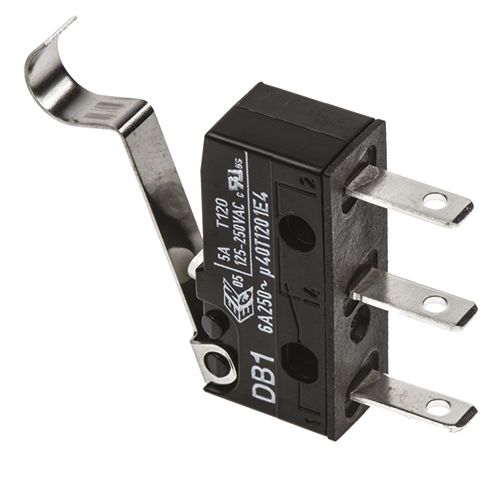 This is SPDT-NO/NC Simulated Roller Lever Microswitch 6 A @ 250 V ac manufactured by ZF. The manufacturer part number is DB1C-B1SC. It has a 0.54 n of operating force. Whereas, the minimum operating temperature of the product is -40°c. The product has -40 → +120°c of operating temperature range. The rated contact current is 6 a @ 250 v ac. The contact is equipped with spdt configuration. The product carries simulated roller lever actuator. The product also provide mechanical stability with 15000000operations. It has a maximum operating temperature of +120°c. The terminal is a tab type. The product is made from sturdy gold, silver alloy materials.