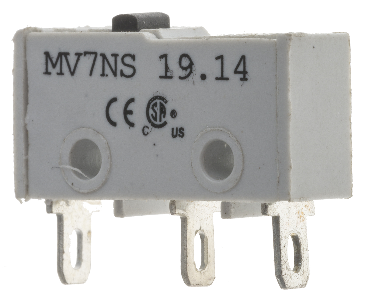 This is SP Plunger Subminiature Micro Switch 2 A @ 250 V ac manufactured by RS Pro. The manufacturer part number is 804-6253. It has a 100 gms of operating force. The product complies with all safety standards, such as ce, csa, iec 1058-1. Moreover, the product has a nominal 250v ac voltage rating. The rated contact current is 2 a @ 250 v ac. Whereas, the minimum operating temperature of the product is -25°c. The product has -25 → +85°c of operating temperature range. The contact is equipped with spst configuration. The casing is constructed from highly stable glass filled thermoplastic material. The product carries plunger actuator. The product also provide mechanical stability with 500000 operations @ 60 cpm. It carries a release force of 15gf. It has a maximum operating temperature of +85°c. The terminal is a solder type. The product is made from sturdy silver materials.
