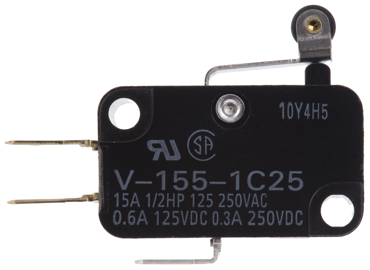 This is SPDT-NO/NC Short Roller Lever Microswitch 15 A @ 250 V ac manufactured by Omron. The manufacturer part number is V-155-1C25. It has a 2.35 n of operating force. Whereas, the minimum operating temperature of the product is -25°c. It is IP rated with ip40. The rated contact current is 15 a @ 250 v ac. The product has -25 → +80°c of operating temperature range. The contact is equipped with spdt configuration. The product carries short roller lever actuator. The product also provide mechanical stability with 50000000operations. It carries a release force of 0.49n. It has a maximum operating temperature of +80°c. The terminal is a tab type. The product is made from sturdy silver alloy materials.