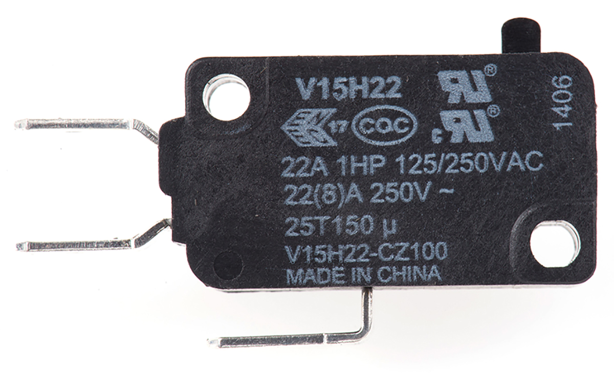 This is SPDT-NO/NC Plunger Microswitch 22 A @ 250 V ac manufactured by Honeywell. The manufacturer part number is V15H22-CZ100. It provides snap action switch operation. It has a 3.92 n of operating force. The product complies with all safety standards, such as cqc, cul, enec, ul. The product has -25 → +150°c of operating temperature range. It is IP rated with ip67. The rated contact current is 22 a @ 250 v ac. Whereas, the minimum operating temperature of the product is -25°c. Moreover, the product has a nominal 125; 250v ac voltage rating. The contact is equipped with spdt configuration. The casing is constructed from highly stable plastic material. The product carries plunger actuator. The product also provide mechanical stability with 1000000cycles. It carries a release force of 25gf. It has a maximum operating temperature of +150°c. The terminal is a quick connect type. The product is made from sturdy silver materials.