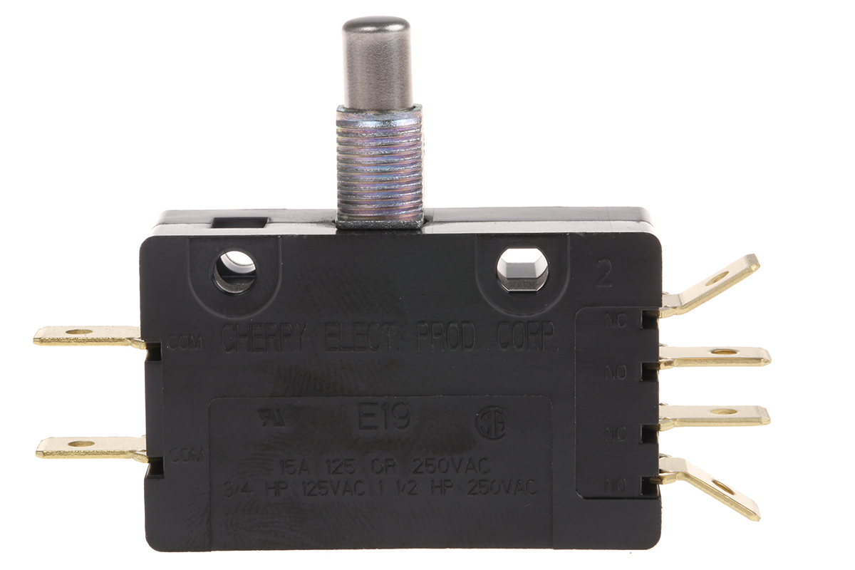 This is DPDT-NO/NC Button Microswitch 15 A @ 250 V ac manufactured by ZF. The manufacturer part number is E19-00M. It has a 8.34 n of operating force. The rated contact current is 15 a @ 250 v ac. The contact is equipped with dpdt configuration. The product carries button actuator. The terminal is a tab type. The product is made from sturdy silver cadmium oxide materials.