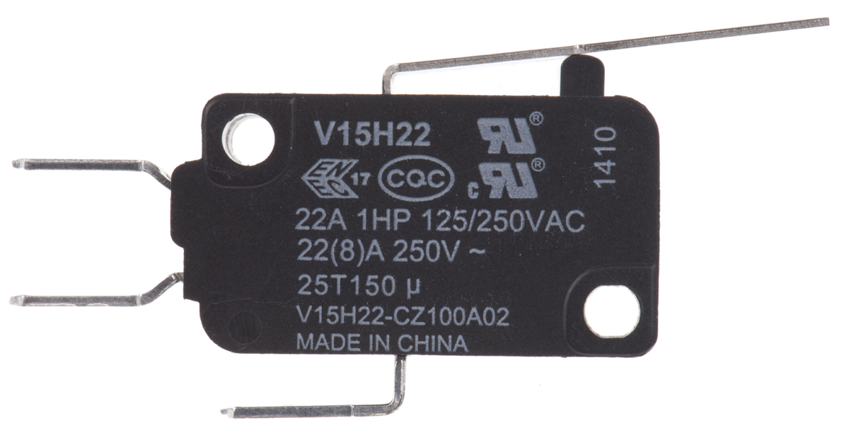 This is SPDT-NO/NC Leaf Lever Microswitch 22 A @ 250 V ac manufactured by Honeywell. The manufacturer part number is V15H22-CZ100A02. It has a 3.92 n of operating force. Whereas, the minimum operating temperature of the product is -25°c. Moreover, the product has a nominal 125; 250v ac voltage rating. The rated contact current is 22 a @ 250 v ac. It is IP rated with ip67. The contact is equipped with spdt configuration. The casing is constructed from highly stable plastic material. The product carries leaf lever actuator. The product has -25 → +150°c of operating temperature range. It provides snap action switch operation. It has a maximum operating temperature of +150°c. The terminal is a quick connect type. The product is made from sturdy silver materials.