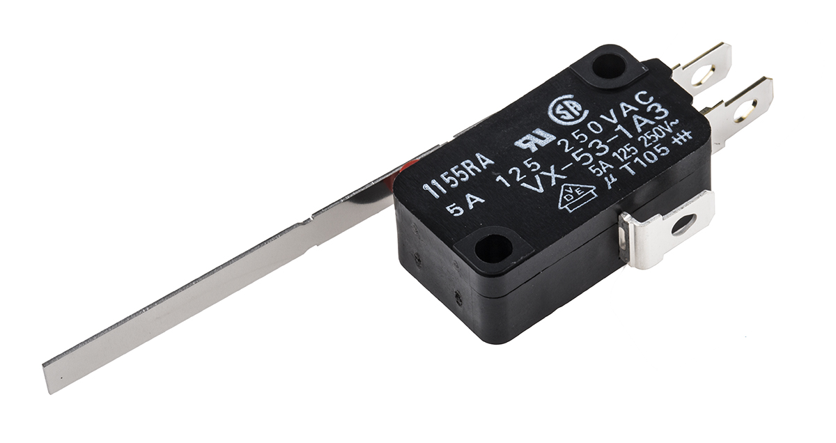 This is SPDT-NO/NC Long Hinge Lever Microswitch 5 A @ 250 V ac manufactured by Omron. The manufacturer part number is VX5-31A3. It has a 0.2 n of operating force. Whereas, the minimum operating temperature of the product is -25°c. It is IP rated with ip40. The rated contact current is 5 a @ 250 v ac. The product has -25 → +80°c of operating temperature range. The contact is equipped with spdt configuration. The product carries long hinge lever actuator. The product also provide mechanical stability with 50000000operations. It has a maximum operating temperature of +80°c. The terminal is a solder type. The product is made from sturdy silver alloy materials.