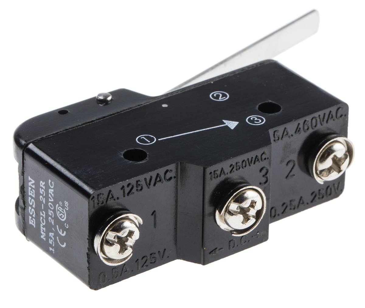This is SP-CO Lever Microswitch 15 A @ 250 V ac manufactured by RS Pro. The manufacturer part number is 797-2570. It has a 85 gms of operating force. The product complies with all safety standards, such as iec 1058-1. Moreover, the product has a nominal 250v ac voltage rating. The rated contact current is 15 a @ 250 v ac. The contact is equipped with sp-co configuration. The casing is constructed from highly stable plastic material. The product carries lever actuator. The product also provide mechanical stability with 1000000operations. It carries a release force of 14gf. The terminal is a screw type. The product is made from sturdy fine silver materials.