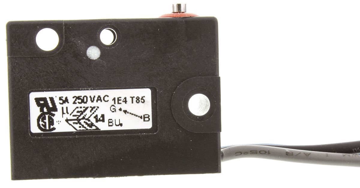 This is SP-NO/NC Plunger Microswitch 5 A @ 250 V ac manufactured by Saia-Burgess. The manufacturer part number is V3S-UL. It has a 3.9 n of operating force. Whereas, the minimum operating temperature of the product is -40°c. It is IP rated with ip67. The rated contact current is 5 a @ 250 v ac. The product has -40 → +85°c of operating temperature range. The contact is equipped with spdt configuration. The casing is constructed from highly stable glass fibre reinforced nylon material. The product carries plunger actuator. The product also provide mechanical stability with 10^6operations. It carries a release force of 1.1n. It has a maximum operating temperature of +85°c. The terminal is a pre-wired type. The product is made from sturdy silver materials.