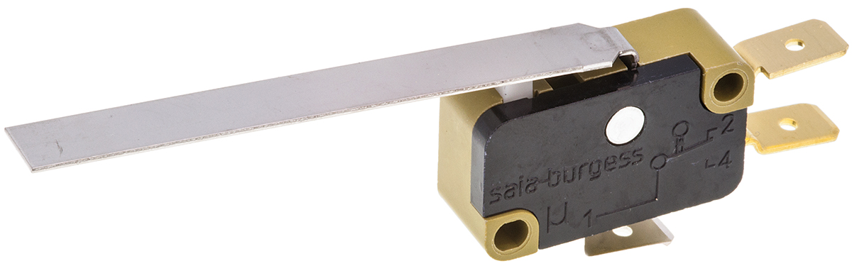 This is SPDT-NO/NC Leaf Lever Microswitch 16 A @ 250 V ac manufactured by Saia-Burgess. The manufacturer part number is XGG2-88-J27Z1. It has a 0.65 n of operating force. Whereas, the minimum operating temperature of the product is -40°c. It is IP rated with ip40. The rated contact current is 16 a @ 250 v ac. The product has -40 → +85°c of operating temperature range. The contact is equipped with spdt configuration. The casing is constructed from highly stable melamine formaldehyd thermosetting material. The product carries leaf lever actuator. The product also provide mechanical stability with 50000000operations. It has a maximum operating temperature of +85°c. The terminal is a tab type. The product is made from sturdy fine silver, silver nickel materials.
