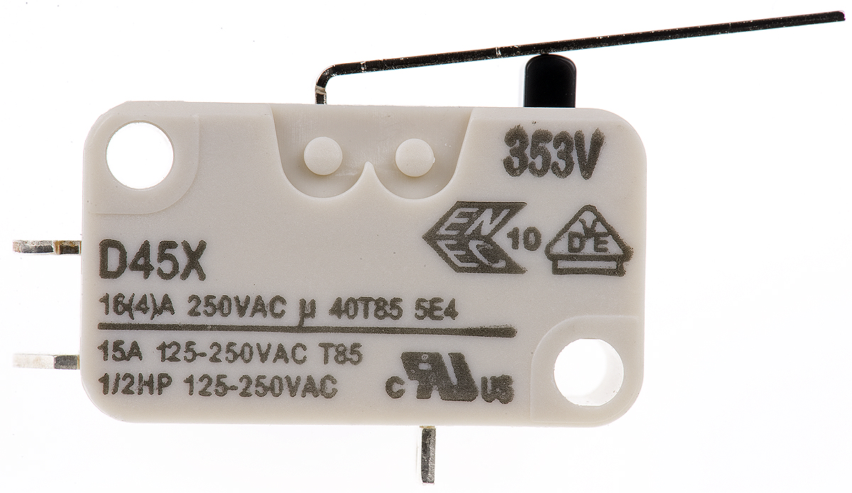 This is SPDT-NO/NC Short Lever Microswitch 16 A @ 250 V ac manufactured by ZF. The manufacturer part number is D459-B8LD. It has a 0.49 n of operating force. Whereas, the minimum operating temperature of the product is -40°c. The product has -40 → +85°c of operating temperature range. The rated contact current is 16 a @ 250 v ac. The contact is equipped with spdt configuration. The product carries short lever actuator. It has a maximum operating temperature of +85°c. The terminal is a solder type. The product is made from sturdy silver alloy materials.