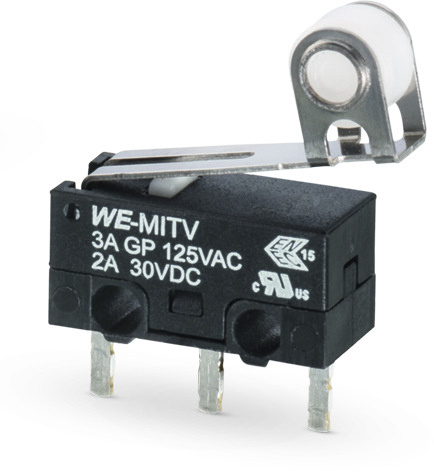 This is THT Micro Switch Terminal with Roller Le manufactured by Wurth Elektronik. The manufacturer part number is 463093370402. It has a 80 gf of operating force. The product complies with all safety standards, such as enec approved enec-02331, ul approved e483308. Moreover, the product has a nominal 30 v dc, 125v ac voltage rating. The rated contact current is 3 a. Whereas, the minimum operating temperature of the product is -40°c. The product has -40 → +85°c of operating temperature range. The contact is equipped with sp-co configuration. The casing is constructed from highly stable pbt material. The product carries lever actuator. It has a maximum operating temperature of +85°c. The terminal is a through hole type. The product is made from sturdy copper alloy materials.