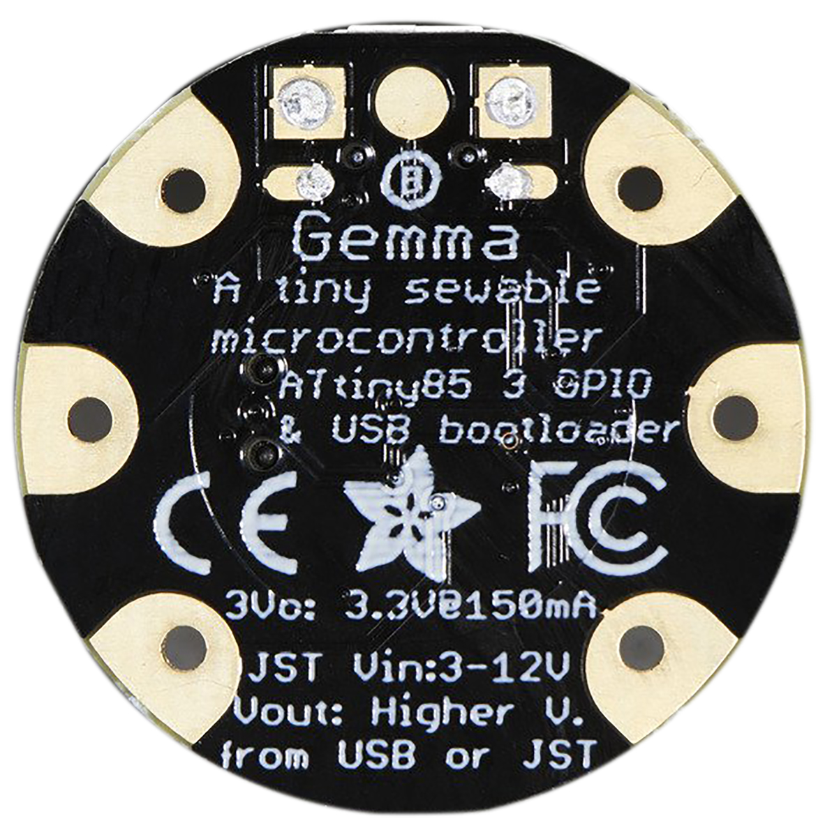 This is Adafruit GEMMA Mini Wearable v2 manufactured by ADAFRUIT INDUSTRIES. The manufacturer part number is 1222. This kit is known as gemma v2, consists of highly versatile and user-desired tools. It is classified as a/an development board . The processor part number is attiny85 . It contains a/an mcu type processor . This product use wearable technology.