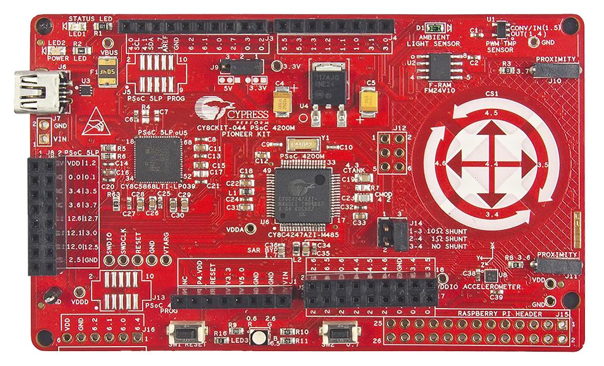 This is PSoC 4 M-Series Pioneer Development Kit manufactured by Cypress Semiconductor. The manufacturer part number is CY8CKIT-044. Additionally, its processor has a/an psoc family name . This kit is known as pioneer, consists of highly versatile and user-desired tools. It is classified as a/an development board . On the other hand, the arm cortex m0 is the device core. The processor part number is cy8c4247azi-m485 . It contains a/an mcu type processor . This product use psoc technology.