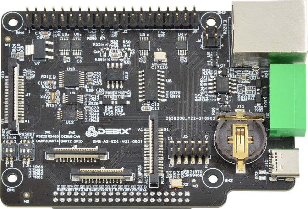 This is DEBIX Model A I/O Board Ethernet PoE I/O Board manufactured by Polyhex. The manufacturer part number is EMB-AS-E01. This product use ethernet, poe technology. This kit is known as debix model a i/o board, consists of highly versatile and user-desired tools. It is classified as a/an i/o board .