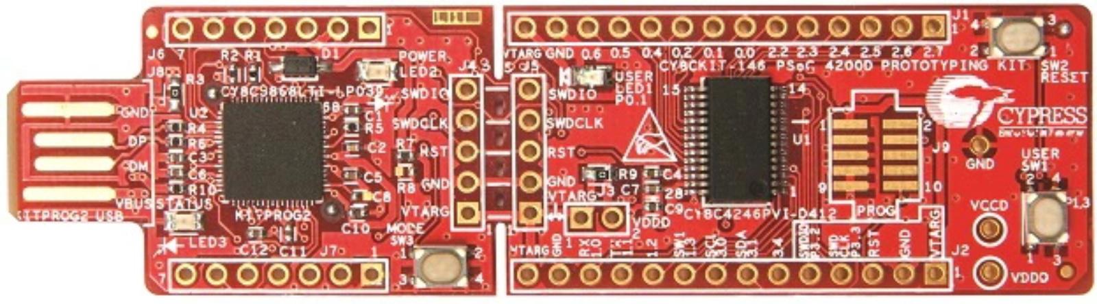 This is PSoC 4200DS Prototyping Kit Development Kit Evaluation Board manufactured by Infineon. The manufacturer part number is CY8CKIT-146. Additionally, its processor has a/an psoc family name . This kit is known as psoc 4200ds prototyping kit, consists of highly versatile and user-desired tools. It is classified as a/an evaluation board . On the other hand, the arm cortex m0 is the device core. This product use development kit technology.