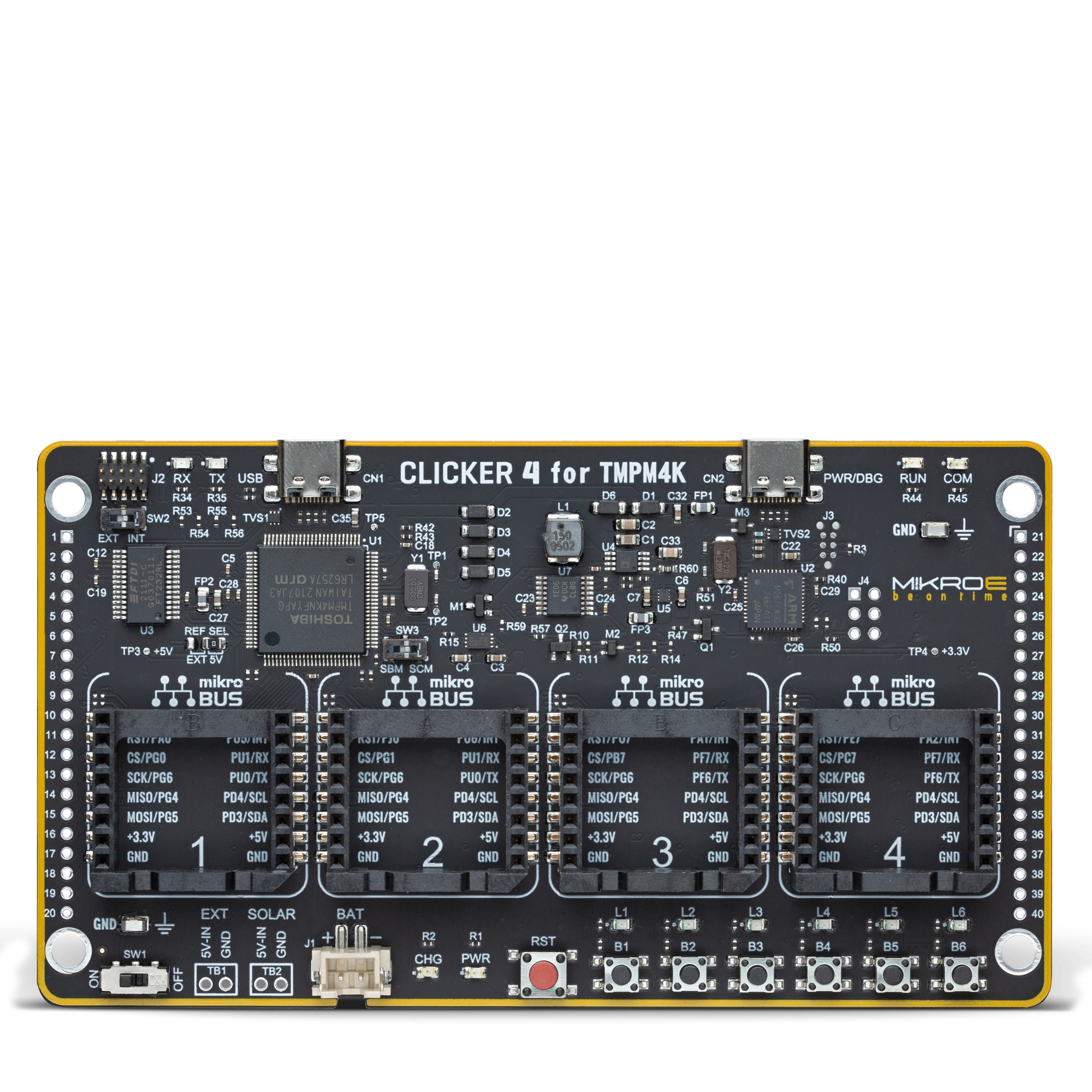 This is Clicker 4 For TMPM4K USB Development Board manufactured by Brand-Rex. The manufacturer part number is MIKROE-4912. This product use usb technology. This kit is known as clicker 4 for tmpm4k, consists of highly versatile and user-desired tools. It is classified as a/an development board .