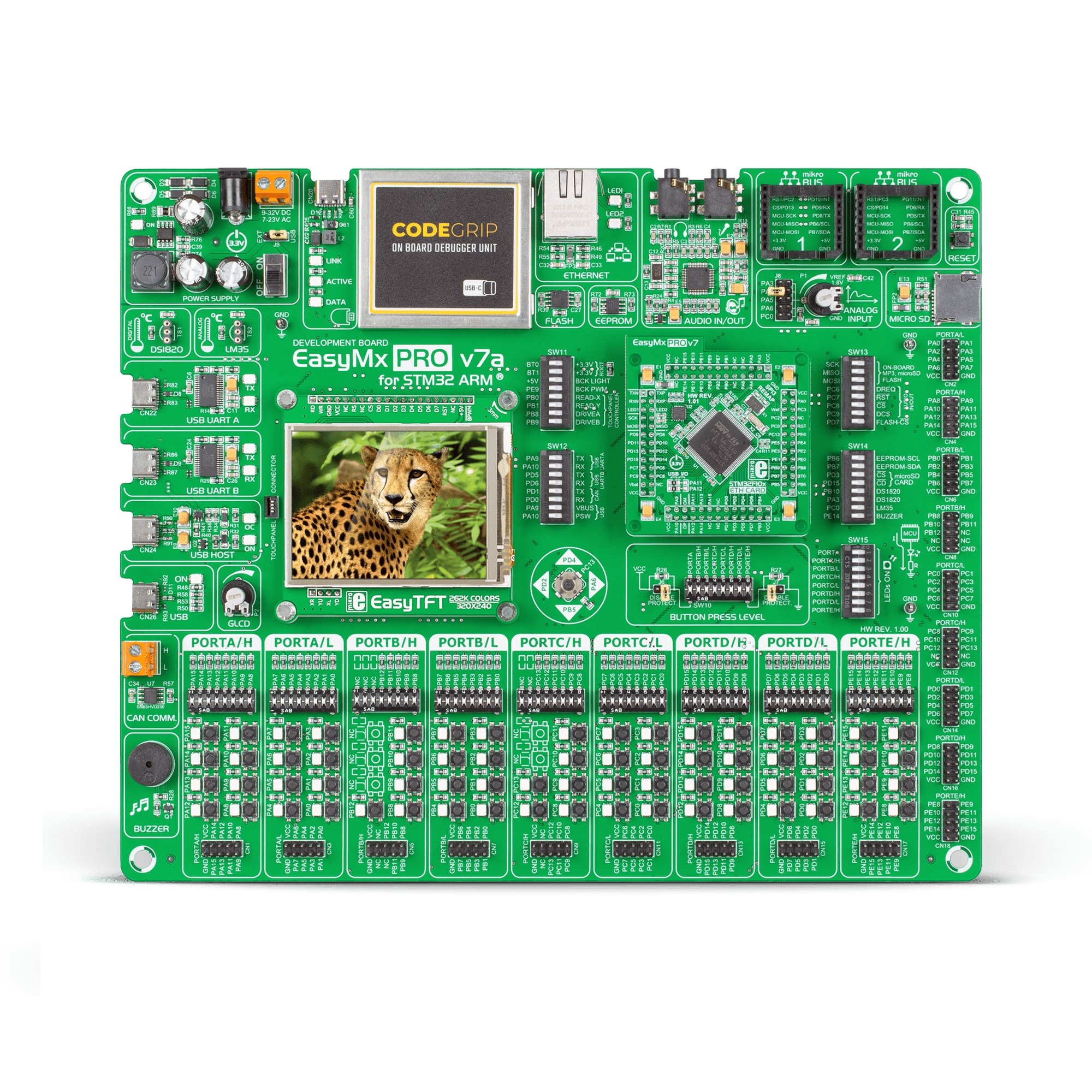 This is EasyMx PRO v7a For STM32 USB Development Board manufactured by Brand-Rex. The manufacturer part number is MIKROE-5200. On the other hand, the arm is the device core. Additionally, its processor has a/an cortex -m0, cortex -m3, cortex -m4, cortex -m7 family name . This product use usb technology. This kit is known as easymx pro v7a for stm32, consists of highly versatile and user-desired tools. It is classified as a/an development board .