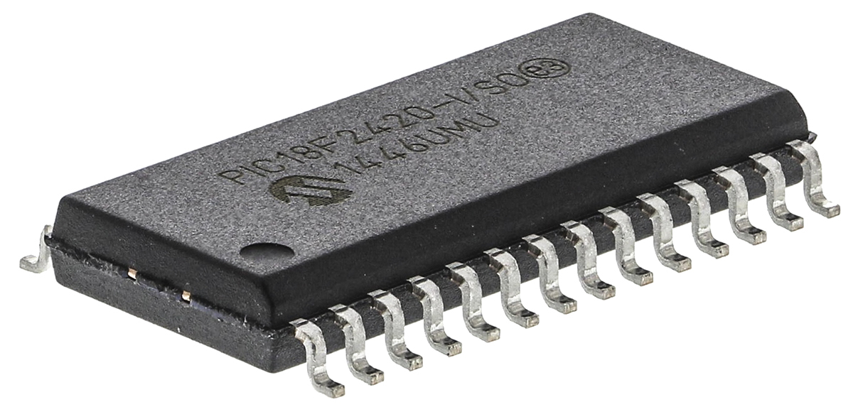 This is 8bit PIC Microcontroller 40MHz 16 kB 256 B Flash 28-Pin SOIC manufactured by Microchip. The manufacturer part number is PIC18F2420-I/SO. Furthermore, the product is 7.5 mm wide. In addition, 16kb is the program memory size. In addition, the height is 2.35mm. The product complies with automotive standard - no. It comprises 4 timers. The product has typical 768bit RAM size. Moreover, the data bus width includes 8bit. The instruction set has risc architecture. It is a flash program memory type. It has a minimum 1.8v supply voltage . The package is a sort of soic. In addition, it has a maximum clock frequency about 40mhz . microcontroller is a versatile product designed to provide user-defined applications. It has a maximum operating temperature of 85°c. On the other hand, the pic is the device core. Its accurate length is 17.9mm. It is a type of spi interface. It contains 28 pins. It has a surface type mount . The product pic18f2420, is a highly preferred choice for users. The product requires a maximum 5.5v supply voltage . The ADCs included 10 x 10 bit. Whereas, the minimum operating temperature of the product is -40°c.