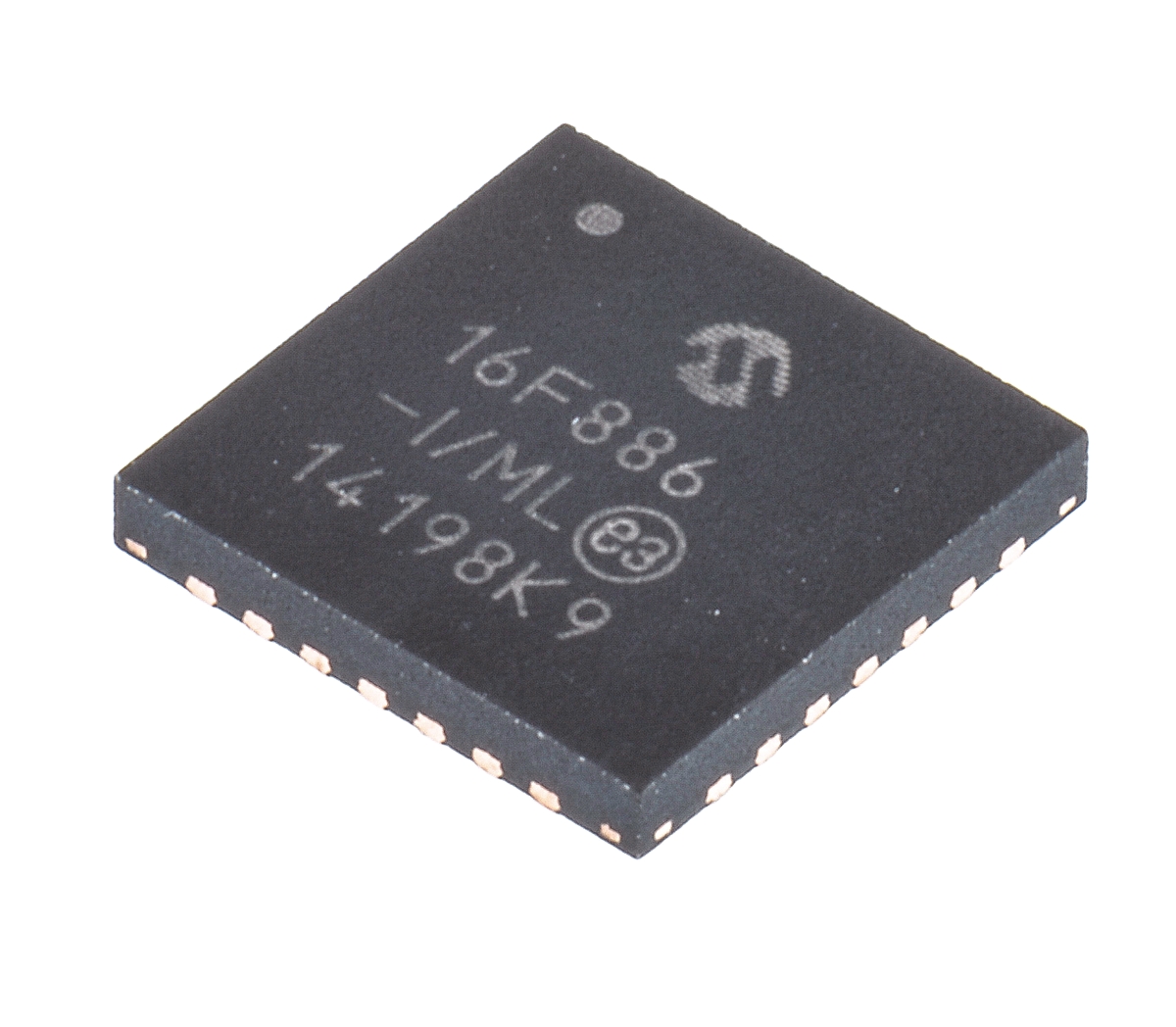 This is 8bit PIC Microcontroller 20MHz 8192 x 14 words 256 B Flash 28-Pin QFN manufactured by Microchip. The manufacturer part number is PIC16F886-I/ML. Furthermore, the product is 6 mm wide. In addition, the height is 0.95mm. In addition, 14kb is the program memory size. The product has typical 368bit RAM size. The product complies with automotive standard - no. It comprises 3 timers. Moreover, the data bus width includes 8bit. The instruction set has risc architecture. It is a flash program memory type. It has a minimum 1.8v supply voltage . The package is a sort of qfn. In addition, it has a maximum clock frequency about 64mhz . microcontroller is a versatile product designed to provide user-defined applications. It has a maximum operating temperature of 85°c. On the other hand, the pic is the device core. Its accurate length is 6mm. It is a type of spi interface. It contains 28 pins. It has a surface type mount . The product pic16f886, is a highly preferred choice for users. The product requires a maximum 5.5v supply voltage . The ADCs included 11 x 10 bit. Whereas, the minimum operating temperature of the product is -40°c.