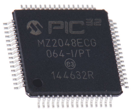 This is 32bit PIC Microcontroller 200MHz 2048 kB Flash 64-Pin TQFP manufactured by Microchip. The manufacturer part number is PIC32MZ2048ECG064-I/PT. The given dimensions of the product include 10 x 10 x 1.05mm. Moreover, it comprises 4 I2C channels. It contains 0 USART channels. The product integrates 1 USB channels. Furthermore, the product is 10mm wide. In addition, 2.048 mb is the program memory size. The product has typical 512 kb RAM size. Moreover, the data bus width includes 32bit. The instruction set has mips32 architecture. It is a flash program memory type. The package is a sort of tqfp. It features 200mhz of maximum frequency. It contains 0 PCI channel . It includes 1 dedicated LIN channels . It has a maximum operating temperature of +85 °c. It is also composed of 6 UART channels. Whereas, the minimum operating temperature of the product is -40 °c. Moreover, the product includes 1 maximum ethernet channels . The product belongs to a family pic32mz. On the other hand, the pic is the device core. Its accurate length is 10mm. It contains 1 ADC units. It contains 64 pins. The product is available in surface mount configuration. It contains 1 dedicated ethernet channels . In addition, the height is 1.05mm. It has 2.2 → 3.6 v of typical operating supply voltage. The ADCs included 24 x 12 bit. Moreover, it consists of 0 CAN channels. Furthermore, it is composed of 4 SPI channels.