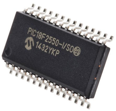 This is PIC18F2550T-I/SO 8bit PIC Microcontroller 48MHz 32 kB 256 B Flash 28-Pin SOIC manufactured by Microchip. The manufacturer part number is PIC18F2550-I/SO. The given dimensions of the product include 17.9 x 7.5 x 2.35mm. Moreover, it comprises 1 I2C channels. It contains 1 USART channels. The product integrates 1 x device USB channels. Furthermore, the product is 7.5mm wide. In addition, 32 kb, 256 b is the program memory size. Furthermore, it is composed of 2 PWM units. The product has typical 2.048 kb RAM size. Moreover, the data bus width includes 8bit. The instruction set has risc architecture. It is a flash program memory type. The package is a sort of soic. It features 48mhz of maximum frequency. It contains 0 PCI channel . It includes 0 dedicated LIN channels . It has a maximum operating temperature of +85 °c. It is also composed of 0 UART channels. Whereas, the minimum operating temperature of the product is -40 °c. The product belongs to a family pic18f. On the other hand, the pic is the device core. Its accurate length is 17.9mm. It contains 1 ADC units. It contains 28 pins. The product carries 2 (10 bit) (ccp) of pulse width modulation. The product is available in surface mount configuration. It contains 0 dedicated ethernet channels . In addition, the height is 2.35mm. It has 4.2 → 5.5 v of typical operating supply voltage. The ADCs included 10 x 10 bit. Moreover, it consists of 0 CAN channels. Furthermore, it is composed of 1 SPI channels.