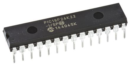 This is 8bit PIC Microcontroller 64MHz 64 kB Flash 28-Pin SPDIP manufactured by Microchip. The manufacturer part number is PIC18F26K22-I/SP. The given dimensions of the product include 1.37 x 0.29 x 0.14in. Moreover, it comprises 2 I2C channels. It contains 2 USART channels. Furthermore, the product is 0.29in wide. In addition, 64 kb is the program memory size. Furthermore, it is composed of 5 x 10 bit PWM units. The product has typical 1.024 kb, 3.896 kb RAM size. Moreover, the data bus width includes 8bit. The instruction set has risc architecture. It is a flash program memory type. The package is a sort of spdip. It features 64mhz of maximum frequency. It contains 0 PCI channel . It includes 0 dedicated LIN channels . It has a maximum operating temperature of +85 °c. It is also composed of 0 UART channels. Whereas, the minimum operating temperature of the product is -40 °c. The product belongs to a family pic18f. On the other hand, the pic is the device core. Its accurate length is 34.8mm. It contains 1 ADC units. It contains 28 pins. The product carries 1 x 10 bit, 2 (2 x 10 bit) of pulse width modulation. The product is available in through hole configuration. It contains 0 dedicated ethernet channels . In addition, the height is 3.56mm. It has 5.5 v of typical operating supply voltage. The ADCs included 17 x 10 bit. Moreover, it consists of 0 CAN channels. Furthermore, it is composed of 2 SPI channels.