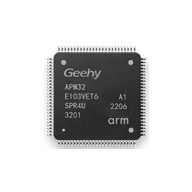 This is manufactured by Geehy Semiconductor USA. The manufacturer part number is APM32E103VET6. It is assigned with possible HTSUS value of 8542.31.0001. The product is rohs3 compliant. In addition, 512kb (512k x 8) is the program memory size. It has supplied with other peripherals, such as dma, i2s, lcd, por, pwm, wdt. The product has -40°c ~ 85°c (ta) operating temperature range. The supply voltage of a bespoke product includes 2v ~ 3.6v. Moreover, the product comes in 100-qfp. The product has typical 128k x 8 RAM size. It is a flash program memory type. It provides connectivity solutions through canbus, fifo, i2c, irda, linbus, sdio, spi, uart/usart, usb. It is shipped in tray package . The product is a external type of oscillator. Its typical moisture sensitivity level is 3 (168 hours). 80 is the I/O value of the product. It has a long 8 weeks standard lead time. It has a core size 32-bit. The product is available in surface mount configuration. The product apm32f103xdxe, is a highly preferred choice for users. 100-lqfp is the supplier device package value. The typical data converters include a/d 16x12b sar; d/a 2x12b. arm® cortex®-m3 is the product's core processor. It has a robust speed of 96mhz. The product is designated with the 3a991a2 code number.