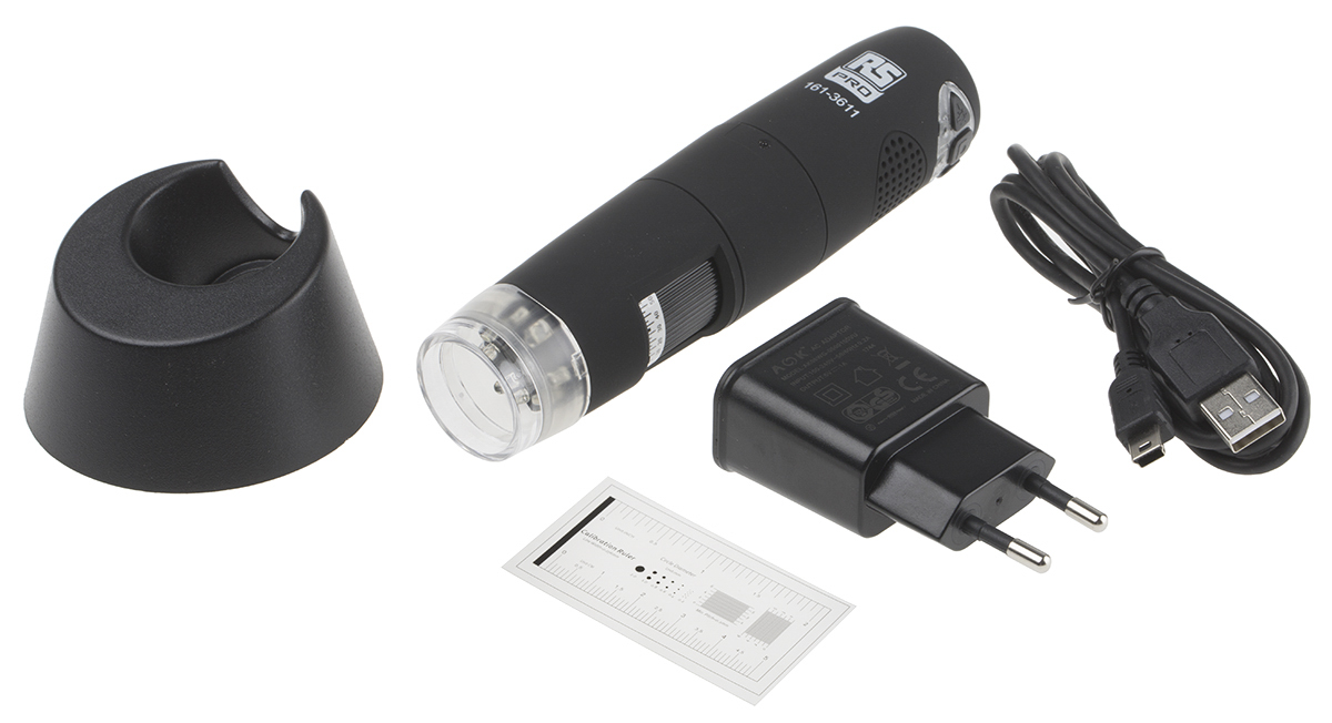 This is Wifi Microscope x5x → 200x manufactured by RS Pro. The manufacturer part number is 161-3611. Its diameter is 36mm. The given dimensions of the product include 36 x 142mm. The typical product's weight is 0.088kg. It is battery operated yes . It has a magnification power of 5 → 200x . While it has micfiuvwp of model number. The plug is a highly reliable type c - european plug with long service life. Its accurate length is 142mm. Illumination Option yes. It contains a/an led type illumination . This li-ion battery is comparatively much efficient than common batteries. Features 1280 x 1024 pixels resolution. It has 15 fps, 30fps frame rate .