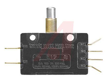 This is DPDT Button Microswitch 15 A manufactured by ZF. The manufacturer part number is 0E1900M0. It has a 850 g of operating force. The product complies with all safety standards, such as csa 16503, csa certified, culus recognized, ul e23301, ul recognized. Moreover, the product has a nominal 125/250v ac voltage rating. The rated contact current is 15 a. Whereas, the minimum operating temperature of the product is -40°c. The product has -40 → +105°c of operating temperature range. The contact is equipped with dpdt configuration. The casing is constructed from highly stable general purpose phenolic material. The product carries button actuator. It has a maximum operating temperature of +150°c. The terminal is a blade type. The product is made from sturdy silver cadmium oxide materials.