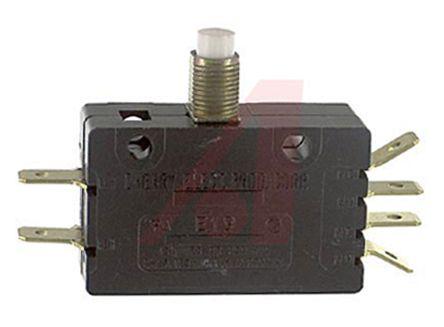 This is DPDT Button Microswitch 15 A manufactured by ZF. The manufacturer part number is 0E1900J0. It has a 850 g of operating force. The product complies with all safety standards, such as csa 16503, csa certified, culus recognized, ul e23301, ul recognized. Moreover, the product has a nominal 125/250v ac voltage rating. The rated contact current is 15 a. Whereas, the minimum operating temperature of the product is -40°c. The product has -40 → +105°c of operating temperature range. The contact is equipped with dpdt configuration. The casing is constructed from highly stable general purpose phenolic material. The product carries button actuator. It has a maximum operating temperature of +150°c. The terminal is a blade type. The product is made from sturdy silver cadmium oxide materials.