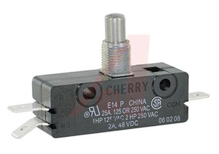 This is SPDT Button Microswitch 2 A @ 48 V dc 25 A @ 125/250 V ac manufactured by ZF. The manufacturer part number is 0E1400M0. It has a 850 g of operating force. The product complies with all safety standards, such as csa 16503, csa certified, culus recognized, ul e23301, ul recognized. Moreover, the product has a nominal 125/250 v ac, 48 v dc voltage rating. The rated contact current is 2 a @ 48 v dc, 25 a @ 125/250 v ac. Whereas, the minimum operating temperature of the product is -40°c. The product has -40 → +105°c of operating temperature range. The contact is equipped with spdt configuration. The casing is constructed from highly stable general purpose phenolic material. The product carries button actuator. It has a maximum operating temperature of +150°c. The terminal is a blade type. The product is made from sturdy silver cadmium oxide materials.