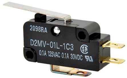 This is SPDT Hinge Lever Microswitch 100 mA @ 30 V dc manufactured by Omron. The manufacturer part number is D2MV-01L-1C3. It has a 0.49 n of operating force. Whereas, the minimum operating temperature of the product is -25°c. It is IP rated with ip40. The rated contact current is 100 ma @ 30 v dc. The product has -25 → +80°c of operating temperature range. The contact is equipped with spdt configuration. The product carries hinge lever actuator. The product also provide mechanical stability with 10000000operations. The product is made from sturdy gold alloy materials. It has a maximum operating temperature of +80°c. The terminal is a solder type. It has a d2 housing switch housing .